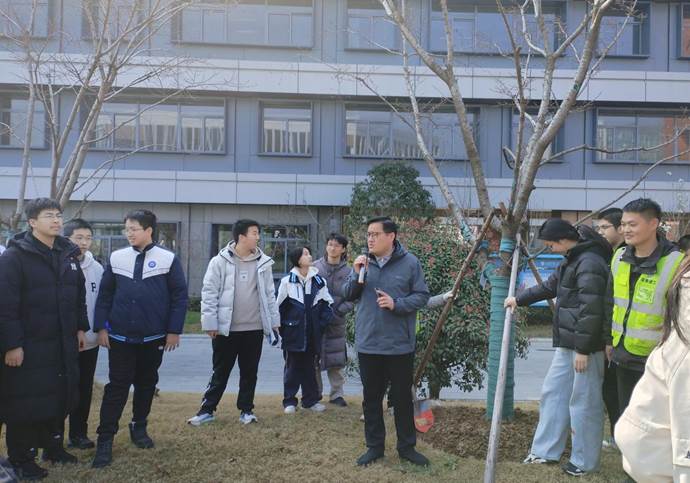 本次课程采用校园植被路线学习模式,特邀安徽三建集团土木处的专业工作人员担任讲授人结合校区植被生长实际,摒弃枯燥的理论灌输,以“现场演示+亲手实践”的方式,为同学们带来了有别日常的学习体验。