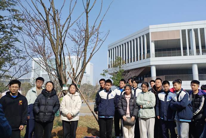 如果说第一天的课程是知识的积累与技能的提升,那么第二天的植物认领与科普进阶则是责任的传递与使命的践行。3月12日上午大课间,高一年级学生齐聚荣誉阁广场樱花林,有序开展植物认领活动。年级主任尚启亮用生动通俗的语言为同学们科普早樱知识,详细介绍了早樱“先花后叶、花量繁多”的形态特征,以及喜温暖湿润、不耐水涝的生长习性,让同学们对身边的樱花树有了更全面、更深入的了解。