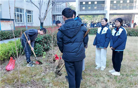 从松土挖坑到扶正苗木,从培土压实到浇灌清水,每一个步骤都认真细致、一丝不苟。指尖沾染的泥土,是劳动最真实的印记;认真专注的脸庞,是青春最动人的模样;齐心协力的身影,是春日校园里最亮丽的风景线。在劳动过程中,同学们始终保持积极昂扬的精神面貌,不怕脏、不怕累,相互帮助、相互鼓励,充分展现了高一学子团结协作、吃苦耐劳的优良品质。大家严格遵守操作规范,做好个人防护措施,在亲身劳作中深刻体会到了劳动的艰辛与不易,也真切感受到了守护绿色、美化校园的快乐与成就感,劳动精神在实践中得到了充分传承与弘扬。