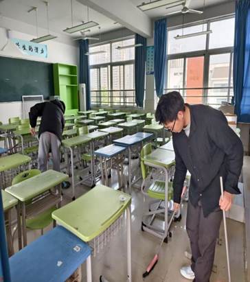 活动当天,志愿者们准时集合,分工明确,迅速投入到打扫工作中。他们对竞赛、走读教室进行了全面的清扫,从课桌的擦拭到地面的清扫,从窗户的清洁到黑板的清理,每一个细节都体现了志愿者们的认真和细致。