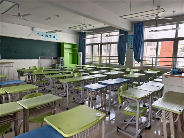 经过大家的共同努力,公用教室焕然一新。课桌排列整齐,地面干净无尘,窗户明亮透明,黑板也恢复了原本的黑色光泽。