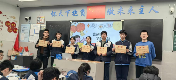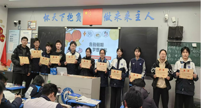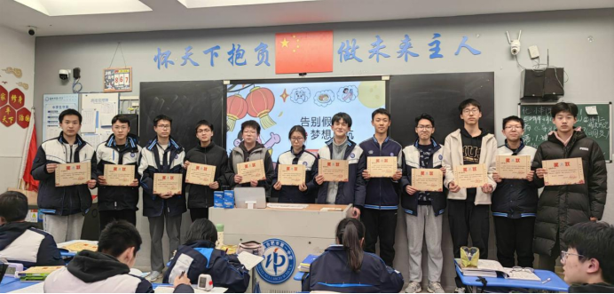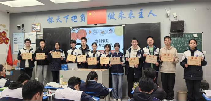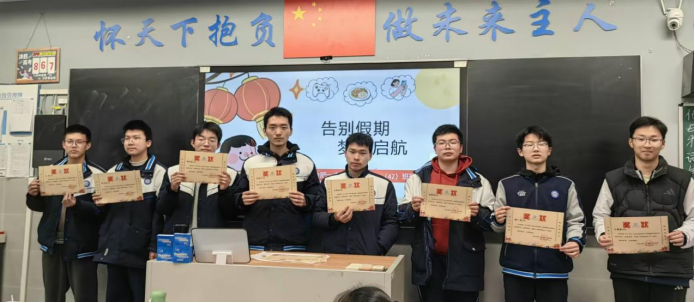 为树立榜样标杆,营造比学赶超、奋勇争先的班级氛围,班会现场举行了庄重的荣誉表彰仪式。班主任依次为上学期表现突出的同学颁发荣誉奖状:获评“优秀班干部”的同学是班级管理的中坚力量,始终恪尽职守、服务同学;“学科带头人”在各学科学习中发挥引领作用,勤学善思、乐于分享;“十佳青年”则是全面发展的青春榜样,在学业、作风、素养等方面均表现优异。班主任对获奖同学的突出贡献给予高度肯定,鼓励他们珍惜荣誉、再接再厉,继续发挥先锋模范作用,同时号召全体同学以先进为标杆,找差距、补短板、明方向,在班级内凝聚起同心奋进的强大合力。