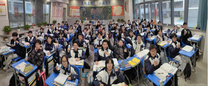 表彰仪式结束后,班会进入温馨暖心的新学期庆祝环节。全体师生共同举杯,共饮酸奶,以简单而充满仪式感的方式迎接新学期的到来。酸甜的酸奶,既承载着师生们对新学期“学有所成、顺遂安康”的美好期许,也寓意着新学期师生同心、携手同行,在轻松融洽的氛围中,进一步拉近了师生距离,让班级的凝聚力与向心力得到充分升华。