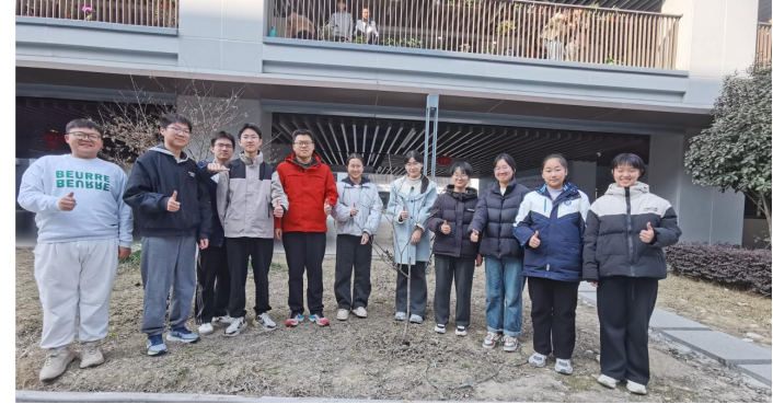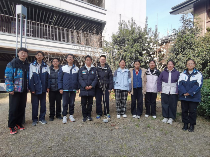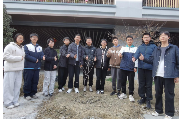 活动从认领一棵树开始。每一株静立校园的树木,都迎来了专属的守护者。我们捧着印有班级合照的认领牌,轻轻悬挂在舒展的枝桠间。照片里并肩而笑的少年意气,与枝头初绽的嫩芽相映成趣,将一段滚烫的青春时光,定格在草木清风之间。随后执铲松土,将肥料缓缓埋入树根,一捧捧温润泥土覆下,藏起的是无声的约定-从此朝夕相伴,共沐风雨,一同在岁月里扎根生长。