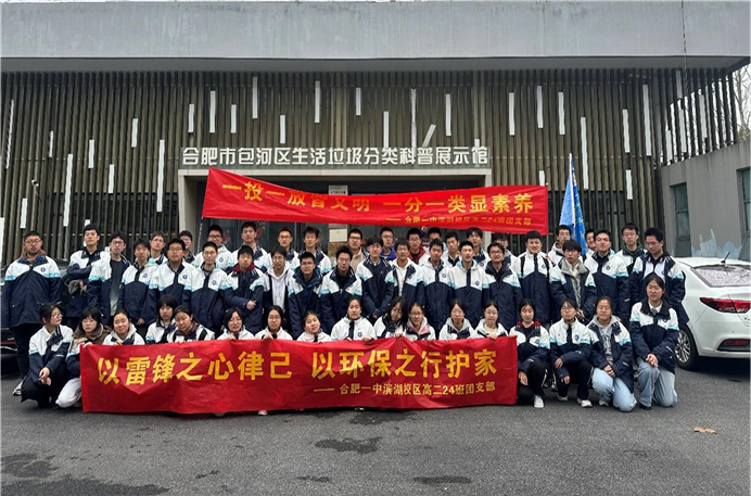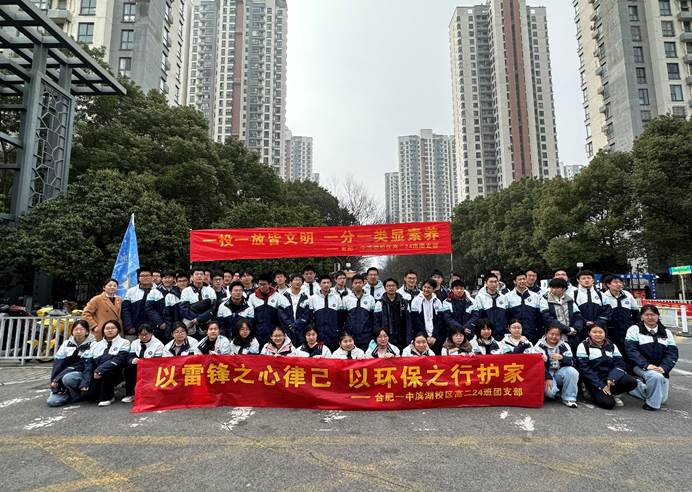 三月春风暖人心,雷锋精神永传承。为响应合肥一中第41届“雷锋伴我行”主题活动号召,深刻把握雷锋精神的时代内涵,2026年3月23上午日,合肥一中滨湖校区高二(24)班全体同学在班主任张秀环老师的带领下,走出校园,开展了以“践行雷锋精神,共倡垃圾分类”为主题的校外实践系列活动。活动通过“思想动员+科普学习+环保实践”的形式,引导学生在志愿奉献中锻炼自我,为滨湖新区的文明建设贡献青春力量。
