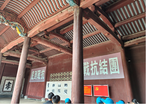 随后,我们参观了政治部旧址和大会堂。政治部旧址内,一张张珍贵的历史照片、一件件饱经沧桑的革命文物,静静陈列。我注意到墙上有一份珍贵的《抗敌报》原件,纸张已经泛黄,但那份抗战到底的决心却穿越时空,依然清晰可辨。在大会堂里,我们集体观看了皖南事变的专题纪录片,当画面定格在“七千余名新四军将士喋血茂林”的史料上时,整个会场鸦雀无声。