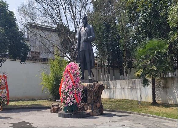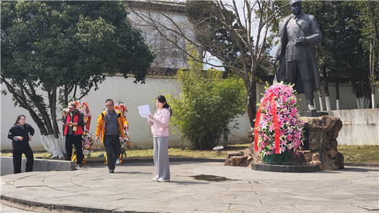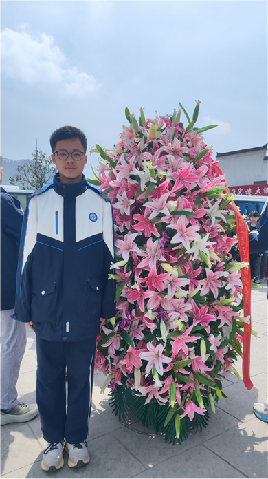 在叶挺将军雕塑前,我作为学生代表之一,怀着无比崇敬的心情,缓步上前敬献花篮。仰望叶挺将军的雕像,他目光坚毅,气宇轩昂,仿佛仍在凝视着这片他为之战斗过的土地。我想起他在狱中写下的《囚歌》:“为人进出的门紧锁着,为狗爬走的洞敞开着……我渴望自由,但也深知道,人的躯体哪能由狗的洞子爬出!”那一刻,我读懂了什么是共产党人的气节,什么是革命者的铮铮铁骨。