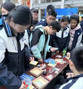 游园会设置九大趣味关卡:24点速算、数独填空、三视图还原、拓扑解谜(九连环/鲁班锁)、心电感应(数学版你画我猜)、趣味投壶(坐标定位)、背诵圆周率、数学谜语猜猜看、莫比乌斯环工坊、挑战汉诺塔。数学社成员提前两周利用课余时间制作道具、编写规则手册,并在活动现场担任“关主”,耐心讲解、公正盖章。