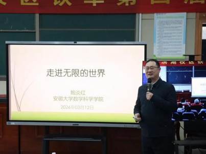 3月12日下午,数学月开幕式在A1阶梯教室隆重举行。合肥一中校长吴英明、安徽大学数学科学学院院长鲍炎红教授、铁军年级部主任许年历等领导嘉宾出席。吴英明校长在致辞中强调数学作为“科学的基础语言”的育人价值,鼓励同学们跳出公式束缚,感受数学的温度。