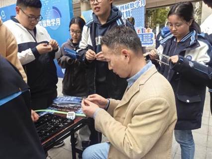 本届数学月中,数学社在指导老师刘斌老师的带领下,从活动策划、物资准备到现场执行,深度参与了每一个环节。刘斌老师表示:“数学社以‘趣味化、实践化、协作化’为宗旨,致力于让更多学生在轻松氛围中感受数学魅力。”社团成员不仅承担了游园会的游戏运营、讲座会务、数学墙布展等工作,还积极动员身边同学参与立体几何手工、数学建模、算法优化挑战赛等子活动。