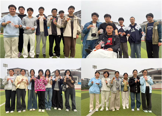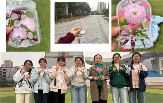 班会伊始,主持人赵俊楠同学宣布“书签收集春色”环节拉开序幕。同学们携带着准备好的透明书签,在学方院内寻找春色。鲜嫩的柳枝、烂漫的野花、嫩绿的草叶,小心翼翼地被放入书签中。集合时,同学们一起讲述每一份春色背后的发现与感动,有的谈及学方院内悄然绽放的春花,有的则聊到天权楼、天枢楼楼下的惬意时光。随后,大家以DIY书签为“画框”,将收集到的春色精心组合,用镜头定格春日美好瞬间,一张张定格的照片,不仅是春日景致的留存,更是同学们对自然之美的珍视与感悟。