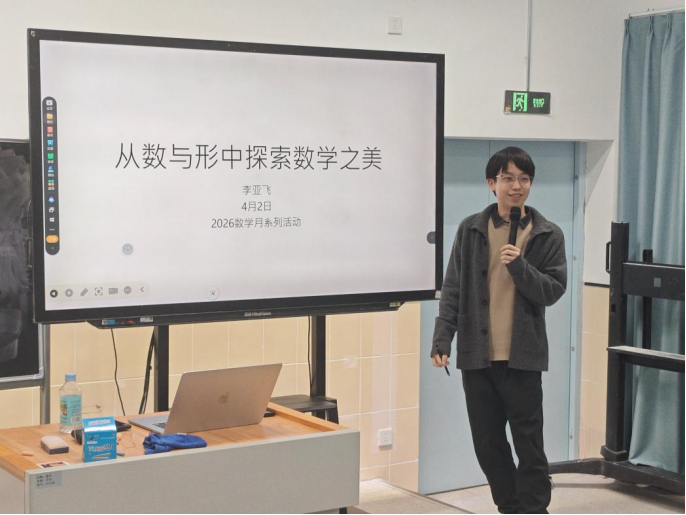 四月的风拂过合肥一中的校园,伴着融融春日暖意,为营造浓厚的校园数学文化氛围、深化学生对数学核心思想的理解,2026年“数‘AI’合一” 数学月系列活动专题讲座,于4月2日下午在教学楼二楼数学竞赛教室顺利开讲。本次讲座特邀合肥一中优秀校友、北京大学本硕在读的李亚飞学长主讲,围绕 “从数与形中探索数学之美” 主题展开系统分享。