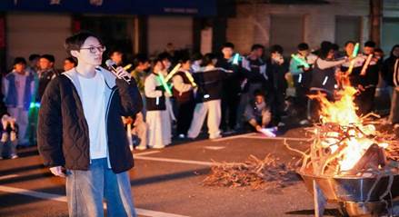 夜幕降临,围绕着温暖的篝火,伴随着主持人热情高亢的声音,同学们的热情被充分调动起来。各班代表纷纷上前深情献唱,绚烂的荧光灯在空中闪烁跳动,激情的歌曲划破夜晚的寂静,在那一刻,大家得以放下学业的压力,卸下身心的疲惫,尽情在欢笑中展现青春的活力与风采。