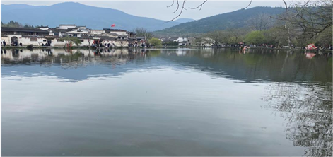 第二天清晨,同学们走进世界文化遗产地——宏村。南湖春水如镜,画桥倒影成诗,徽派建筑的马头墙在晨光中勾勒出柔美的天际线。跟随导游,大家穿行于“牛形村落”的水系布局中,惊叹古人的智慧。“承志堂”的木雕精美绝伦,每一处雕刻都蕴含着徽商对家风的重视。