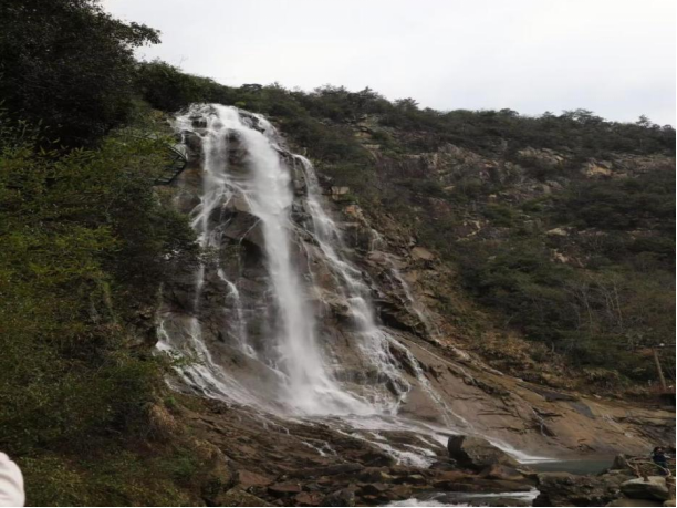 旅行的最后同学们也不忘结伴成行,将脚印留在了大别山彩虹瀑布。水流自猴子崖飞泄而下,气势磅礴,吼声如雷,河水撞击岩石,水花四溅,犹如喷雾行云,阳光透过水雾,呈现出一道绚丽的彩虹,蔚然壮观,有人身临其境,人行虹移,似有梦幻的感觉,让人不虚此行,同学们也纷纷在此地留下了美照。