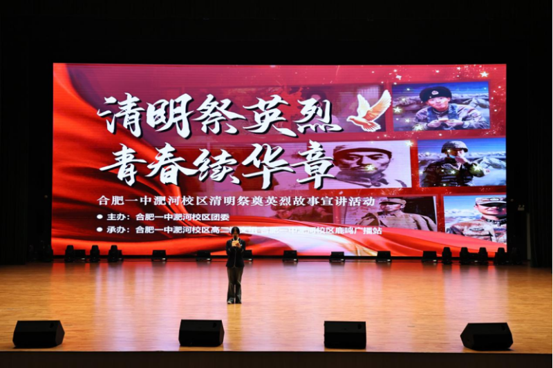 清明追思,英魂永铸。为传承红色基因,厚植家国情怀,引导学子铭记英烈事迹、赓续红色血脉,2026年4月2日下午17:50,合肥一中淝河校区以 “清怀寄英烈,逐光续华章”为主题的清明祭奠英烈故事宣讲活动在端馥堂举行。合肥一中党委委员、副校长肖琼,合肥一中淝河校区执行副校长蔡胜国,合肥一中淝河校区政教处副主任唐安,合肥一中淝河校区高二年级部副主任陈银科到场指导。