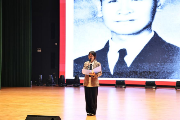 活动现场,大屏幕上英烈的光辉事迹画面徐徐滚动,肃穆的氛围让每一位在场学子心生敬畏。在广播站社员高二89班万艺彤的主持下,宣讲活动正式拉开帷幕。