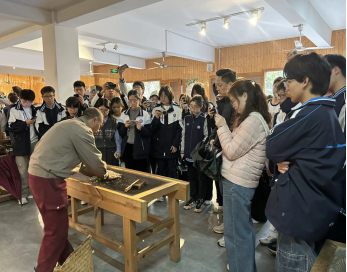 离开红色热土,师生们来到中国宣纸文化园,开启一场与千年非遗的深度对话。作为“宣纸之乡”,泾县宣纸制作技艺早已列入人类非物质文化遗产代表作名录,承载着中国传统工艺的最高智慧。走进文化园,一股淡淡的草木清香扑面而来,从原料工坊到古法制作车间,完整展现了一张宣纸从自然草木到传世佳纸的全过程。
