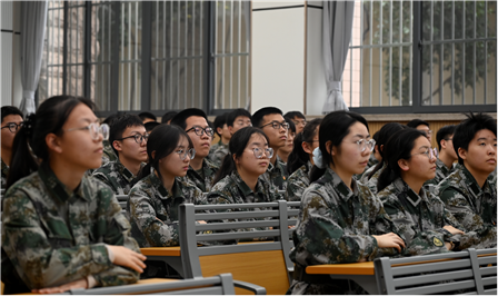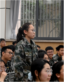 学院邀请了优秀学员代表开展以“星火长明 青春筑梦”为主题的国防教育主题宣讲。她们是一对双胞胎姐妹,她们用自己的成长经历为背景,生于军人世家的她们从小立志投身国防事业,最终通过自己的拼搏和努力一起考入国防科技大学,实现自己的理想,成为了光荣的人民军人。感人的故事,生动的解读,宣讲中展现了青少年保家卫国的责任与担当,引发同学们的强烈共鸣,也在心里默默种下了从军报国的种子。