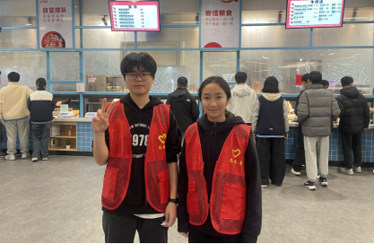 活动期间,校区每天精准安排2名志愿者,分赴食堂一层和二层,在中午时段开展执勤工作。志愿者们随着下课铃声准时到岗,坚守各自服务区域,成为食堂里一道亮眼而温暖的“志愿风景线”。他们的工作覆盖食堂就餐全流程:从引导文明排队到倡导“光盘行动”,从维护环境卫生到协助餐后清理,每一个环节都认真对待。