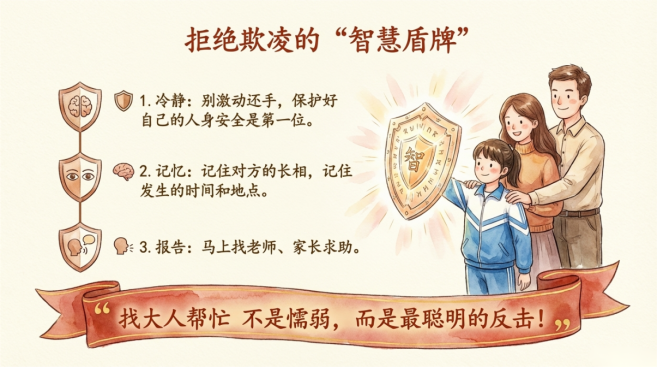 面对霸凌,我们该怎么办?郑老师给出了清晰的答案:勇敢说“不”,用坚定的语气表明态度;及时求助,第一时间告诉老师或家长,绝不沉默;保留证据,保存聊天记录或截图;团结互助,在确保自身安全的前提下,向被霸凌的同学伸出援手。更重要的是,每位同学都要从自身做起,尊重他人,学会用沟通化解矛盾,不做冷漠的旁观者,更不做施暴者。