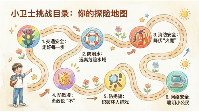 接下来,郑老师强调交通安全,他带领同学们重温了步行、骑行、乘车的各项安全规范,包括步行时走人行道、过马路走斑马线、遵守红灯停绿灯行规则;骑乘电动自行车需佩戴安全头盔;乘车时系好安全带,不将头手伸出窗外。