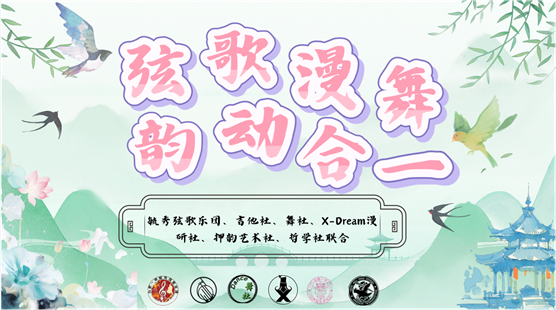 春和景明,万象更新。为深入落实“五育并举”育人理念,丰富校园文化生活,搭建学生多元展示与交流的平台,2026年4月13日,在校团委的指导下,滨湖校区学生社团在艺术礼堂举办“弦歌漫舞·韵动合一”联合展演。本次活动由毓秀弦歌乐团联合吉他社、X-Dream漫研社、舞蹈社、哲学社等学生社团共同呈现,为全校师生带来了一场兼具艺术深度与青春活力的视听盛宴。